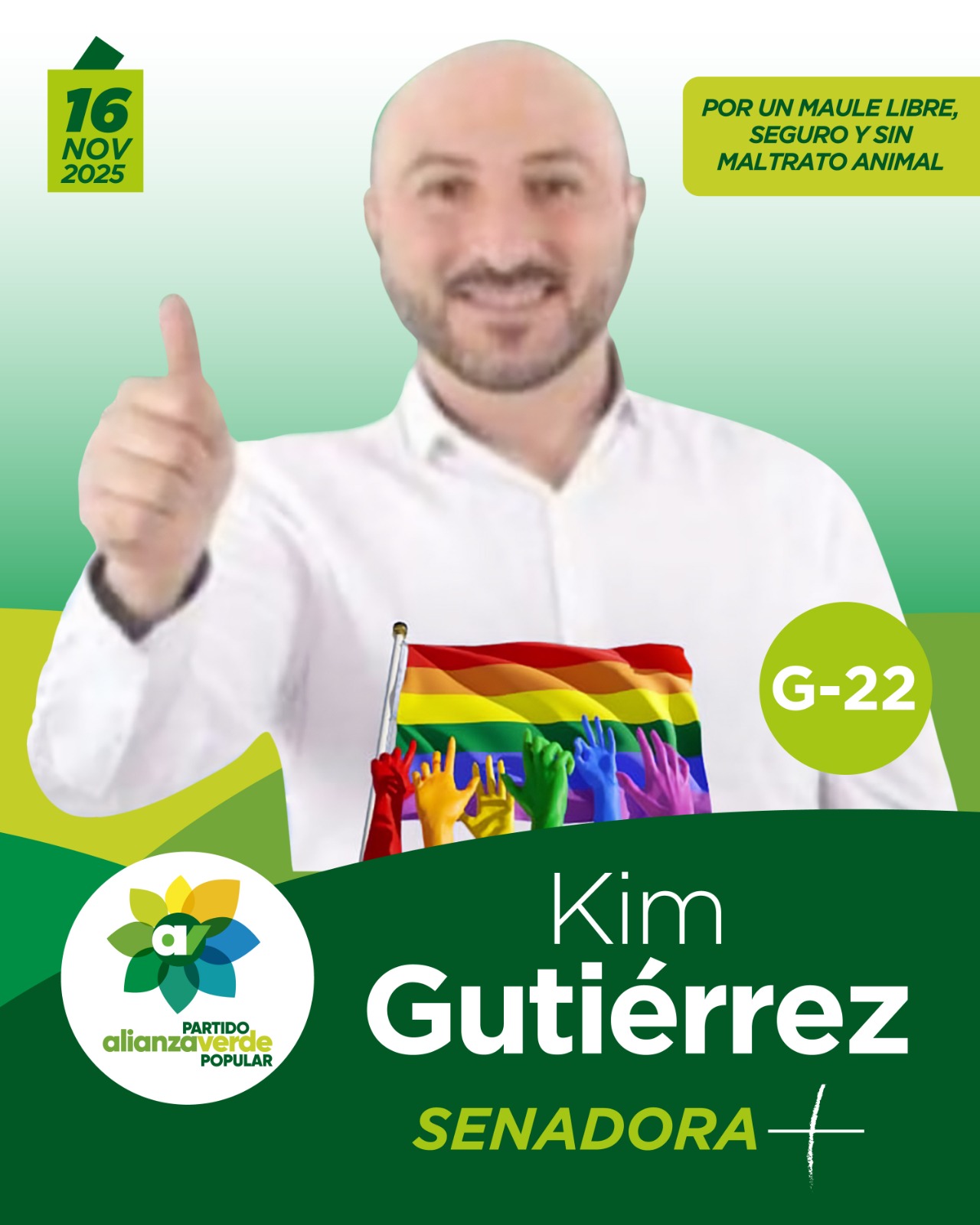 Este 19 de noviembre son las elecciones presidenciales y parlamentarias. Te invitamos a conocer a Kim Gutierrez, por un Maule libre, seguro y sin maltrato animal.